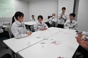 式典終了後には懇親会を開催しました。懇親会では、採用担当者が考案したオリジナルゲームを実施し、新入社員と各事業室の室長、そして社長をはじめとする役員が一緒になって参加しました。ゲームを通じて自然なコミュニケーションが生まれ、緊張していた新入社員の表情も徐々に和らぎ、笑顔あふれる時間となりました。